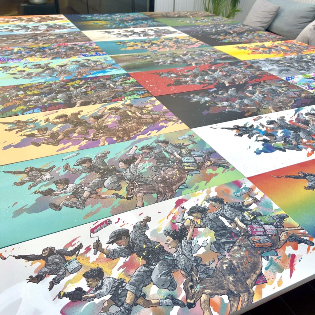 Original Canvases / Created with stencil spray and freehand drawing710x310mm